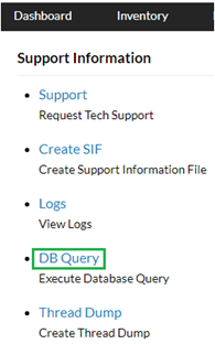 Database queries can be run from the web UI to pull various information from the database. In addition, Manage Engine may provide queries and request the output when troubleshooting an issue.